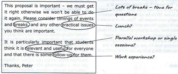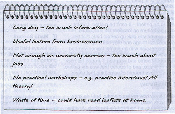 1 Your college is planning a special event for older students, providing advice and information about jobs and further education possibilities. You have been asked to write a proposal for the college principal, outlining what should be included in the day, suggesting how it should be organised and giving reasons for your recommendations. Using the feedback from last year's event and an email from the careers officer on which you have made some notes, write your proposal.